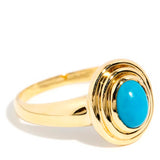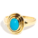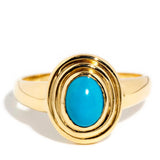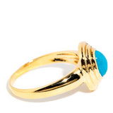 The bright blue oval turquoise cabochon measures approximately 7.5x 5.5 millimetres. Wear is consistent with age and wear.