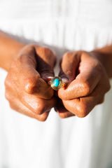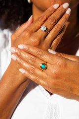 Crafted with simplicity in 18 carat gold, The Celine Ring encapsulates the spirit of vitality and growth that is the turquoise. Wear her on sun-filled days and dreamy nights, be exuberant, be joyous, or just be.