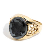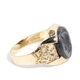 Once more unto the breach... Inspired by stories past of wars and of warriors, of powerful leaders and of vanquished foes, The Antonius Signet Ring, crafted in 9 carat gold, embodies the spirit of ancient wars, the steely hematite emblazoned with the image of a nameless Roman soldier, strong and resolute.