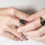 The Antonius Ring belongs to our treasure trove of strongly sustainable, ethical, environmentally friendly, and conflict-free jewellery. He lives in our carefully curated collection of one-of-a-kind vintage jewellery pieces. A vintage piece of jewellery has many stories to tell: tales of romance, love, family, happiness, and sometimes loss and endurance. Handed down from person to person, generation to generation. The Antonius Ring is a piece of wonderful history.