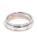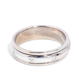 A sleek design from the 1990s with a touch of classic elegance, our Emma Ring is a statement in simplicity. Featuring an 18 carat white gold band with ribbed detailing, and diamonds, set at intervals along the band, add a touch of sparkle and sophistication.