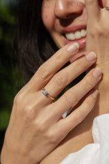 Crafted in 14 carat yellow and white gold, our Verbena Ring is a sweet and abiding classic. A single sparkling diamond sits at the centre of a band that adds such beauty in it's simplicity. A lovely inclusion in any jewellery collection.
