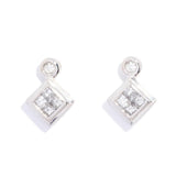 The Millie Earrings, crafted from 18 carat white gold, are a stunning pair that exude elegance and sophistication. With princess cut diamonds set in a fine frame, they sparkle like stars against the night sky. The additional small diamond accents bring a playful charm, enhancing the overall design. These earrings are a classic addition that will bring a touch of glamour to any occasion.