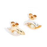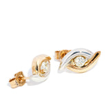 Our delightful 9 carat gold Jemima Earrings sparkle like dewdrops caught in the morning light. The curve of white and yellow gold, one warm and one cool, create a captivating contrast, enhancing the radiance of her diamonds. Beautifully simple, simply beautiful.