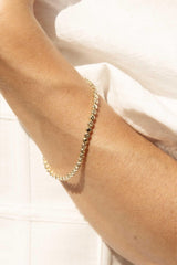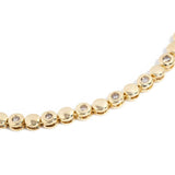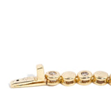 A dazzling cascade of diamonds adorns this exquisite 9 carat yellow gold tennis bracelet. Each brilliant stone, a tiny star, meticulously set in a single row, creating a mesmerising display of light and sparkle. The warm glow of the yellow gold complements the brilliance of the diamonds, enhancing their radiance. We have named her Grace, a timeless beauty that exudes elegance and sophistication.