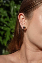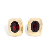 A lush cushion of shimmering 9 carat gold frames a single garnet of deep red-brown. We have named our stud earrings Bastina. Beautifully contoured they will make a wonderful inclusion in your jewellery collection.