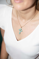 Crafted in 18 carat gold and with a 14 carat gold chain, The Genevieve Pendant & Chain is a vibrant jewel. Her stunning blue turquoise imagines the rich seas of the Maldives with the sun dancing upon it's surface. She is the perfect gift for someone special.