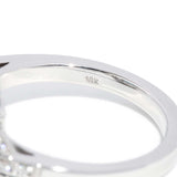 The bright deep teal indicolite tourmaline is a modified square emerald cut and is 2.0 carats and measures approximately 7.5 x 7 x 5.3 millimetres. The round brilliant cut diamonds total 0.46 carats with F colour and VS to SI clarity grades.