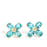 "Ocean Breeze" 6.69 Carat Apatite & Diamond Cluster Studs 9 Carat Gold