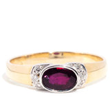 Ophelia 1980s 9ct Gold Rub Over Ruby & Diamond Ring