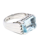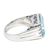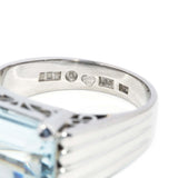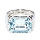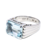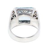 Alizee 1950s Emerald Cut Aquamarine Filigree Ring 18ct White Gold