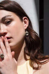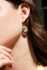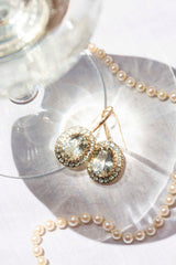 The Alma Earrings are a celebration of glamour and glitz. Her icy mint quartz halos dance in the light of moonlit skies and bask in the flashing cameras of the paparazzi. Her time in the spotlight is now.
