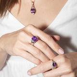 Bold and irresistible, The Alexis Ring is a celebration of colour and light. Her vivid amethyst sits bookended by fireworks of sparkling diamonds. Crafted in 18 carat white gold she is a much needed folly.