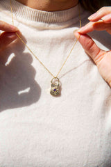 The Andree Pendant & Chain belongs to our treasure trove of strongly sustainable, ethical, environmentally friendly, and conflict free jewellery. She lives in our carefully curated collection of one-of-a-kind vintage jewellery pieces. A vintage piece of jewellery has many stories to tell. Tales of romance, love, family, happiness and sometimes loss and endurance. Handed down from person to person, generation to generation. The Andree Pendant & Chain is a piece of wonderful history.