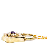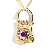 Andree 1960s Amethyst & Seed Pearl Padlock Pendant & 9ct Chain