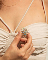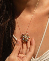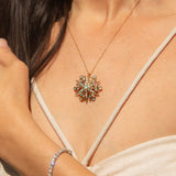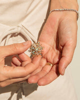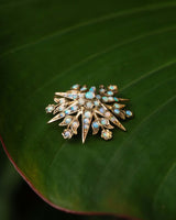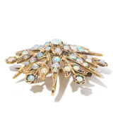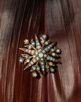 Enchant your attire with the gorgeous Fleur, our Edwardian crystal opal star pendant brooch, crafted in lustrous 15ct yellow gold and doubling as a pendant. Each opal glimmers, bringing the starburst design to life with stories of the past. A harmonious blend of artistry and elegance, she transcends time, making her the perfect accent for modern souls drawn to antique charm and celestial beauty.