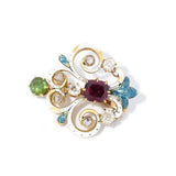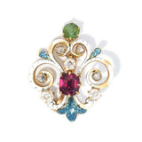 Gemma Victorian Rhodolite Tourmaline & Old Cut Diamond Brooch 18ct Gold
