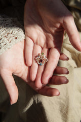 The Gemma Brooch is part of our trove of strongly sustainable, environmentally friendly, and conflict-free jewellery. She lives in our carefully curated collection of one-of-a-kind vintage treasures - polished and restored with care by our talented jewellers, restoring them to their former glory.