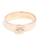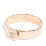 Eimear, a resplendent treasure of 1908, cradles a star-kissed diamond in 9 carat rose gold. This hallmarked band, woven with stories of old, captures the heart with her glint, echoing whispered promises of eternal enchantment and yesterday’s forgotten dreams.