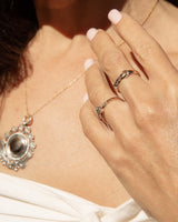 In the spirit of new beginnings, the Oliver Pendant dances with the grace of the Art Nouveau period, her sterling silver form kissed delicately by rose gold. She offers a a radiant beauty crafted with love and thoughtful hands.