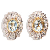 The oval bright light blue aquamarines measure approximately 5.0x4.0 millimetres. The round brilliant cut diamonds are estimated tot total 0.02 carats.