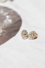 The Celeste Earrings are a grand celebration of shimmering diamonds and icy blue aquamarines. A monument to the decadence of cinemas Golden Age, the world is her stage and the curtain will rise as is her wont.