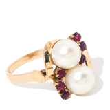 Araceli 1960s Pearl & Ruby Crossover Ring 14ct Gold