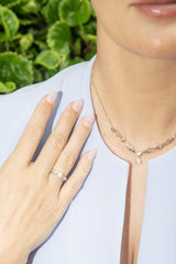 A symphony of diamonds dance on the finger, a sparkle of movement and light. Crafted in 18 carat white gold, the Arden Ring is a love story etched in precious metal and shimmering gems. Her delicate pave-set diamonds create a halo of light, making her a timeless treasure that will forever whisper tales of romance.