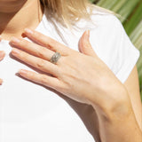 The Thandie Ring belongs to our treasure trove of strongly sustainable, ethical, environmentally friendly, and conflict-free jewellery. She lives in our carefully curated collection of one-of-a-kind vintage jewellery pieces. A vintage piece of jewellery has many stories to tell. Tales of romance, love, family, happiness and sometimes loss and endurance. Handed down from person to person, generation to generation. The Thandie Ring is a piece of wonderful history.