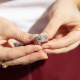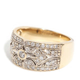 Inspired by the Art Deco period and crafted in 9 carat gold, The Thandie Ring is a stunning jewel. She is as though lace was embellished with diamonds, sparkling as you move, a sweet addition to your jewellery collection.