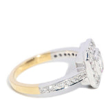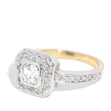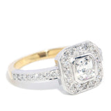 Our Macie Ring, crafted in 18 carat gold is a joyous celebration ring. Her halo setting of diamond sparkle on sparkle is lifted on shoulders of light. For life's big occasions she is perfect, both pretty and impactful she will be the beginning of your family's story for generations to come.