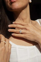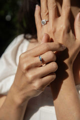 The Macie Ring belongs to our treasure trove of strongly sustainable, ethical, environmentally friendly, and conflict-free jewellery. She lives in our carefully curated collection of one of a kind vintage jewellery pieces. A vintage piece of jewellery has many stories to tell. Tales of romance, love, family, happiness and sometimes loss and endurance. Handed down from person to person, generation to generation. The Macie Ring is a piece of wonderful history.