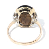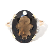 The oval smoky quartz measures approximately 12.5 x 12.3 millimetres. The stone has a very fine scratch on the surface however, does not affect the beauty. The rose cut diamonds are measure approximately 1.3 millimetres.