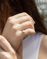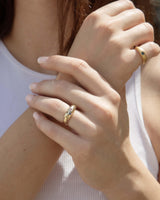 Our textured 18 carat yellow gold Belinda Ring is a celebration of modern design. Her surface creates a sense of tactile appeal, while the vibrant sapphire, set at her centre, adds a pop of vibrant colour. The contrast between the rustic gold and the smooth sapphire creates a captivating and visually striking piece.
