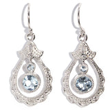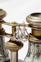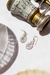 As sweet and delicate as her name may suggest, The Birdie Earrings are a flight of whimsy. Ornately crafted, she is as though lace was woven using white gold thread and finished with the shimmer of blue aquamarines. The stage is set for her encore.