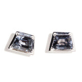 The pair of trapezoid cut bright bluish-grey spinels total 0.89 carats.
