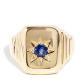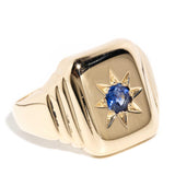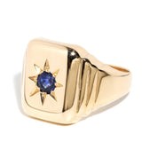 Evander 1970s Blue Sapphire Signet Ring 9ct Gold