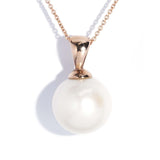 Adorn yourself with the elegance of the Bondi Pearl Pendant, a stunning 9ct rose gold piece that captures the essence of a sunlit shore. This vintage treasure, shimmering softly like ocean waves, embraces a lustrous pearl at its heart. Perfect for modern souls, it whispers tales of romance and timeless beauty. A true gem for any collection.