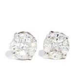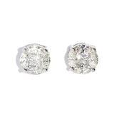 Our exquisite Tertia Earrings showcase a radiant cluster of diamonds, their facets sparkling with a dazzling brilliance that rivals stars in the night sky. Her diamonds, set in 18 carat white gold, form a stunning constellation of light, reflecting the wearer's beauty and elegance. The perfect gift for your someone special.