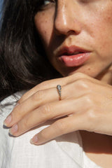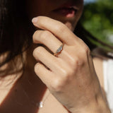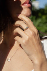 The Brianna Ring belongs to our treasure trove of strongly sustainable, ethical, environmentally friendly, and conflict-free jewellery. She lives in our carefully curated collection of one of a kind vintage jewellery pieces. A vintage piece of jewellery has many stories to tell. Tales of romance, love, family, happiness and sometimes loss and endurance. Handed down from person to person, generation to generation. The Brianna Ring is a piece of wonderful history.