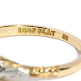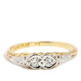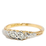 Our Brianna Ring is beautifully crafted in 18 carat gold & platinum with diamond embellished ribbon that curves around her raised dais. With exquisite detailing she is a darling vintage piece.