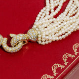 Cartier Pearl Rope Necklace 18ct Gold Diamond Clasp