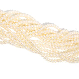 The 2193 medium cream-coloured Akoya cultured pearls have pinkish to slightly greenish tones, measure approximately 2.50-3.00mm, are well matched, and have good lustre. The 99 round brilliant cut diamonds are of F to G colour and VS2 to SI2 clarity grades.
