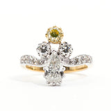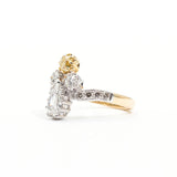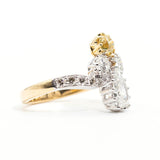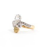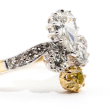 Exquisitely forged in 18 carat white and yellow gold, this gorgeous contemporary engagement ring boasts a stunning centrepiece. A breathtaking ADGL certified 0.41 carat fancy light yellow diamond sits above two shimmering round brilliant diamonds totalling 0.33 carats. Below this enchanting trio is a fabulous ADGL certified 0.70 carat pear shape diamond. The high polish flat edge band curves into elegant shoulders inlaid with ten glistening round brilliant diamonds. We have named her The Saville Ring, the perfect engagement ring for celebrating eternal love.