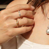 A dance of diamonds. Our elegant Charlotta Ring features two old cut diamonds, seemingly caught in a graceful dance. Her flowing 18 carat yellow gold band adds a touch of whimsy and movement. A sweet and treasured gift for your love.