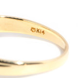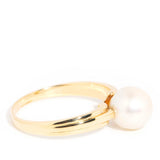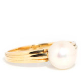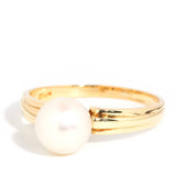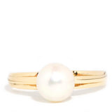 Crafted in 14 carat yellow gold, this lovely vintage 1970s ring holds an endearing cultured white pearl with high lustre on an elegant grooved band. Her name is The Phoebe Ring. She is a wonderfully refined ring perfect for everyday wear, sure to find a treasured place in your vintage jewellery collection.