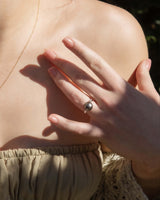 The Kalani Ring is part of our trove of strongly sustainable, environmentally friendly, and conflict-free jewellery. She lives in our carefully curated collection of one-of-a-kind vintage treasures - polished and restored with care by our talented jewellers, restoring them to their former glory.