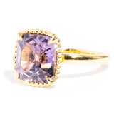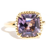 Tranquil sophistication is embodied in the Nancy ring, adorned with a 4.86 carat Asscher cut purple spinel set in radiant 18 carat gold, exuding a modern allure synonymous with contemporary artistry.