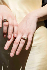The Harlowe Ring can be resized upon request prior to shipping. Resizing is complimentary up or down three sizes. Please message us for a quote if more sizes are needed.