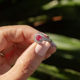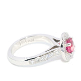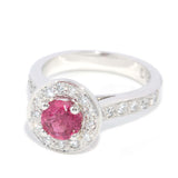 Darla dazzles with contemporary allure, her pink tourmaline centre enveloped in a halo of diamonds, a radiant masterpiece in platinum. A tribute to modern brilliance, she captivates with her shimmering dance of light, speaking of passion and dreams fulfilled.